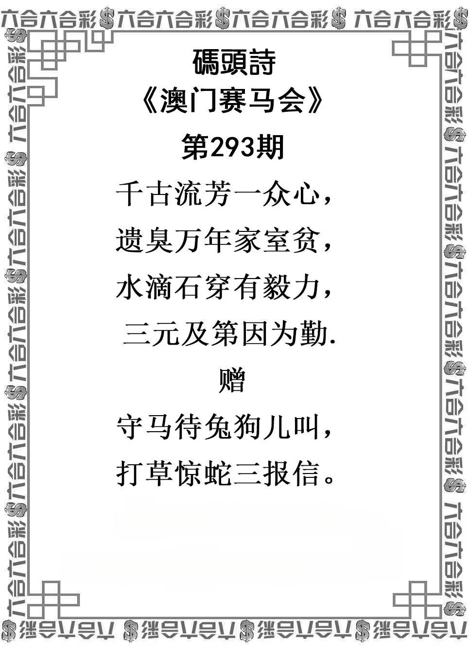 293期:日夜中特【日肖】开:??????? |